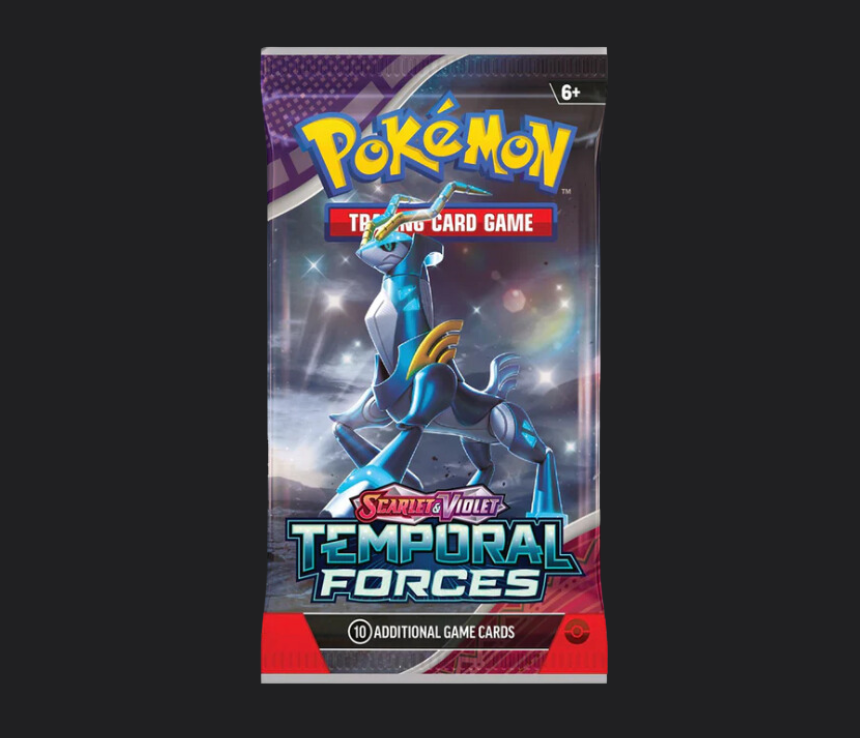 The ranks of Ancient and Future Pokémon continue to grow! Walking Wake ex breaks free of the past alongside Raging Bolt ex, while Iron Leaves ex delivers high-tech justice with Iron Crown ex. Outside Area Zero, Wugtrio and Farigiraf shift types as Tera Pokémon ex, and Pokémon Trainers everywhere prepare for the return of ACE SPEC cards with uniquely powerful effects. A rupture in time brings wild beasts and cyber visions to battle in the Pokémon TCG: Scarlet & Violet—Temporal Forces expansion!